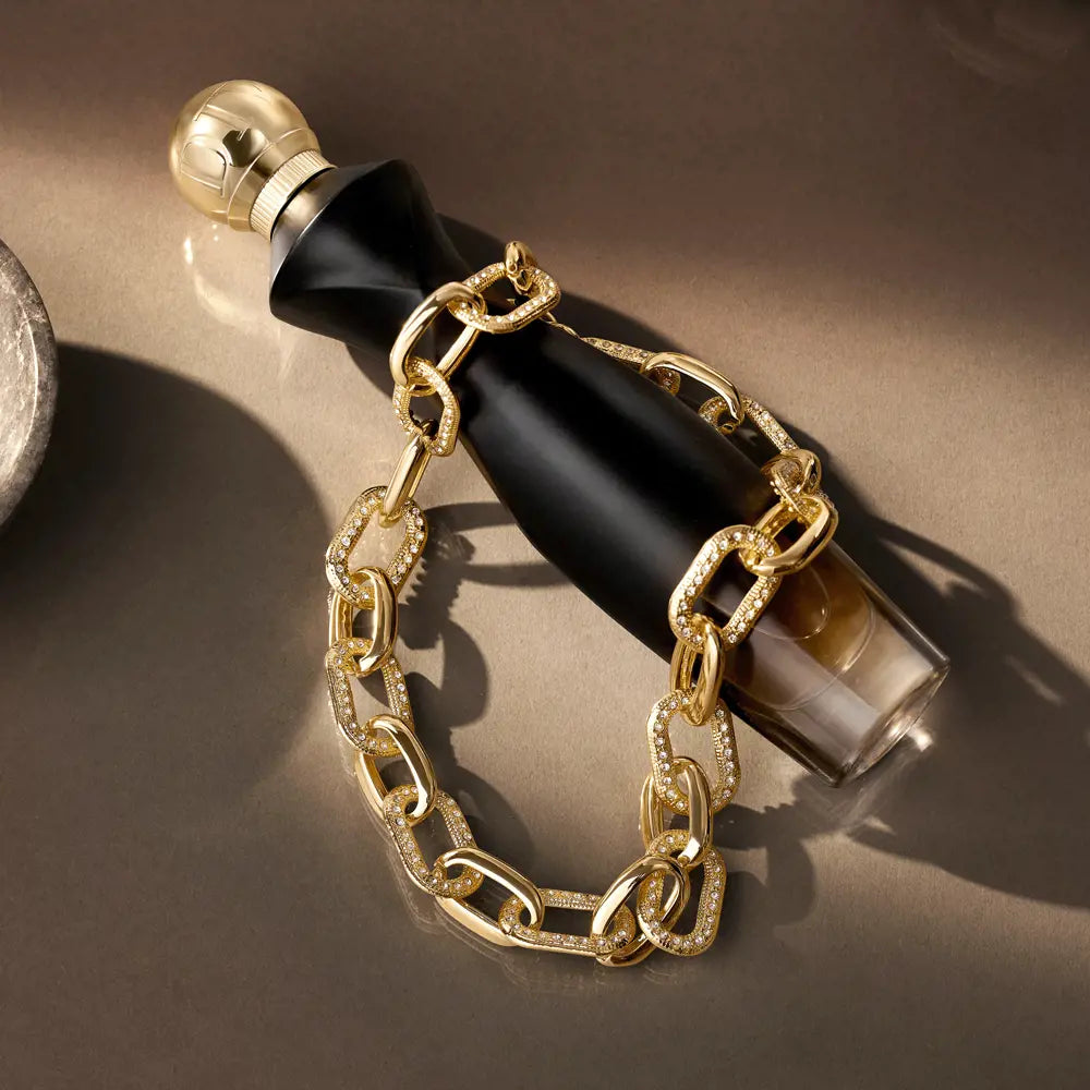 A bold statement necklace crafted with gold coloured links and shimmering accents. Inspired by iconic style moments, it brings drama and polish to any wardrobe.